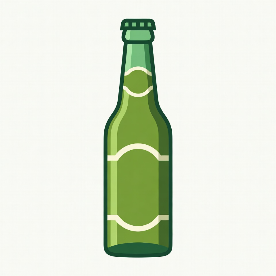 alcohol, beer, beverage, bottle, cap, clipart, drink, flat design, green bottle, illustration, isolated background, label, line art, outline, vector, beer bottle