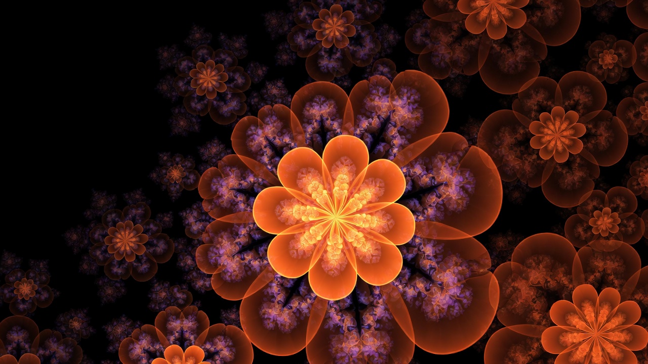 abstract art, abstract flower, black background, digital art, digital flower, digital illustration, fiery flower, floral design, floral fractal, flower cluster, flower petals, fractal art, fractal design, fractal pattern, glowing flower, glowing petals, magenta petals, neon art, neon flower, orange flower, orange glow, orange petals, purple flower, purple glow, purple hues, radiant flower, vibrant flower, fractal flower