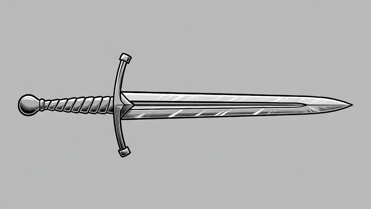 blade, clipart, crossguard, fantasy sword, gray background, hilt, illustration, isolated background, knight sword, line art, longsword, medieval sword, metal sword, pommel, quillons, steel blade, weapon, sword
