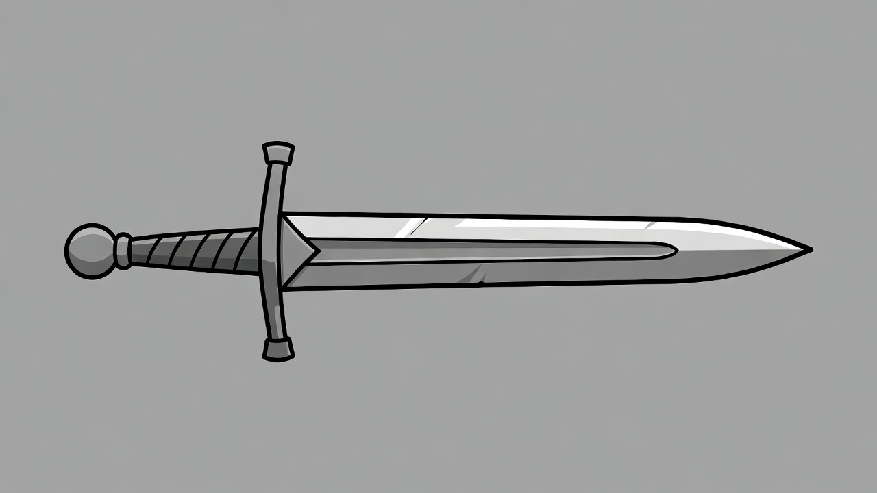 blade, clipart, crossguard, double-edged, fantasy sword, grip, hilt, illustration, isolated background, knight sword, line art, medieval sword, pommel, sharp blade, steel blade, vector, weapon, sword