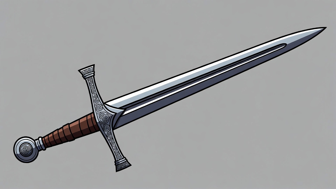 RPG sword, blade, clipart, crossguard, fantasy weapon, hilt, illustration, isolated background, knight sword, leather grip, longsword, medieval sword, ornate design, pommel, silver blade, weapon, sword