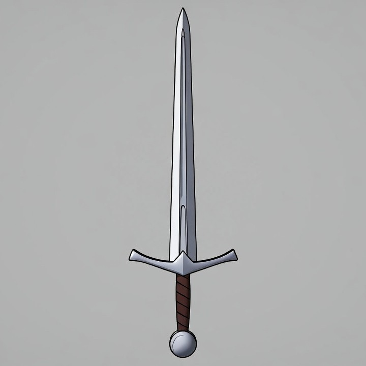 RPG sword, clipart, crossguard, fantasy sword, illustration, isolated background, knight sword, leather handle, longsword, medieval sword, metal sword, pommel, silver blade, weapon, sword
