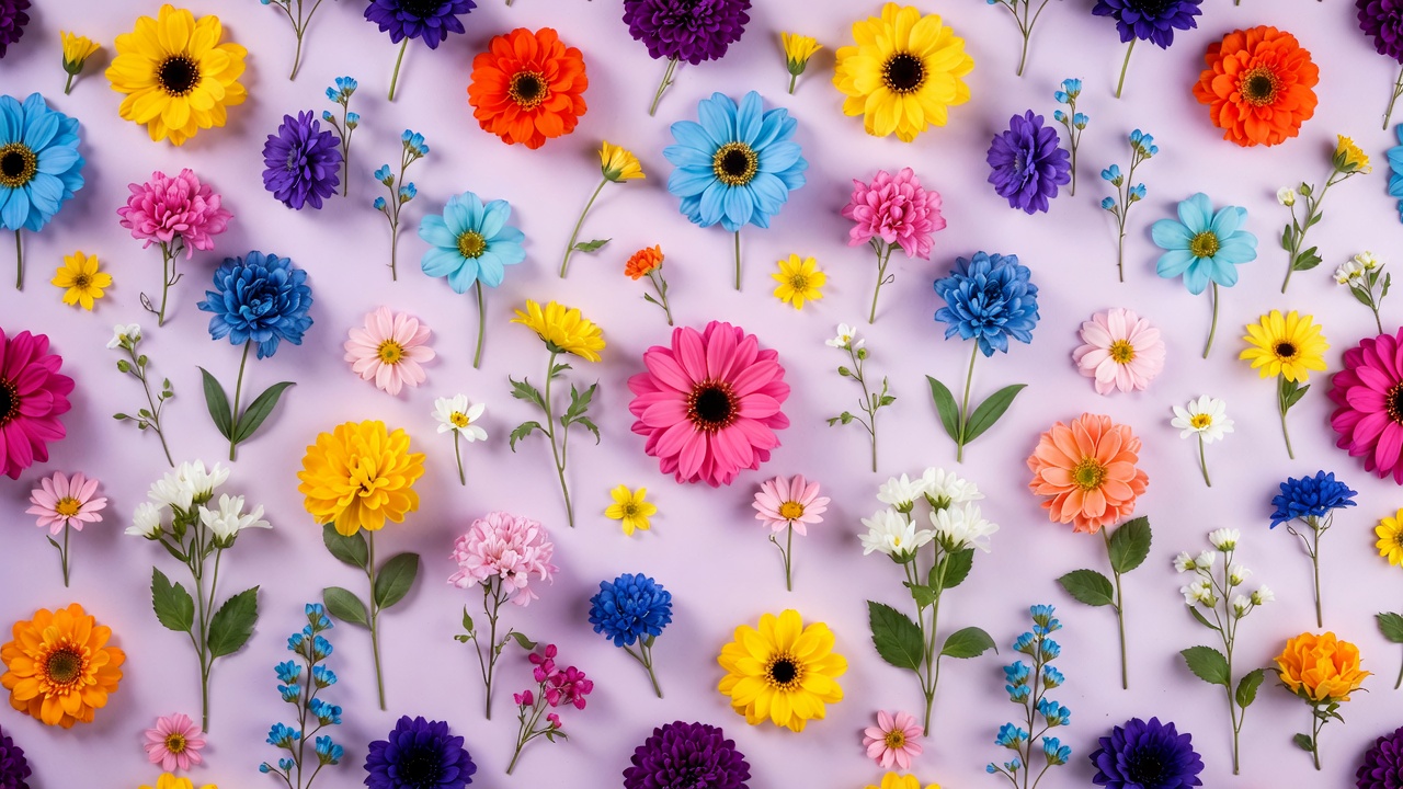 blue daisies, colorful flowers, daisy bouquet, flat lay, floral pattern, flower arrangement, flower photography, garden flowers, isolated background, multicolored flowers, orange daisies, petals, pink background, pink daisies, purple daisies, spring flowers, stems, vibrant blooms, yellow daisies, daisies