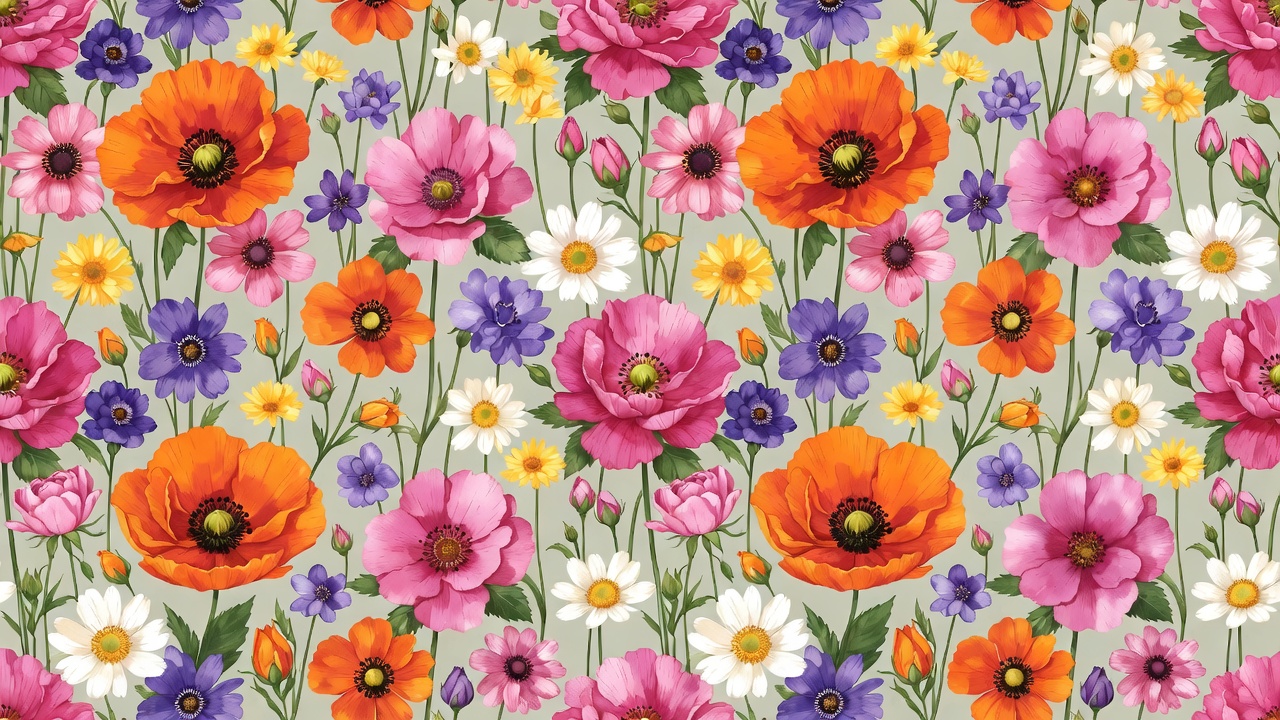 artistic flowers, blooming poppies, bright flowers, clipart, colorful flowers, digital art, floral design, floral pattern, flower bouquet, flower cluster, flower field, flower illustration, garden flowers, green leaves, isolated background, multicolor floral, nature illustration, orange poppies, petals, pink flowers, poppy bouquet, purple flowers, seamless pattern, stems, vibrant blooms, watercolor style, white daisies, poppy flowers
