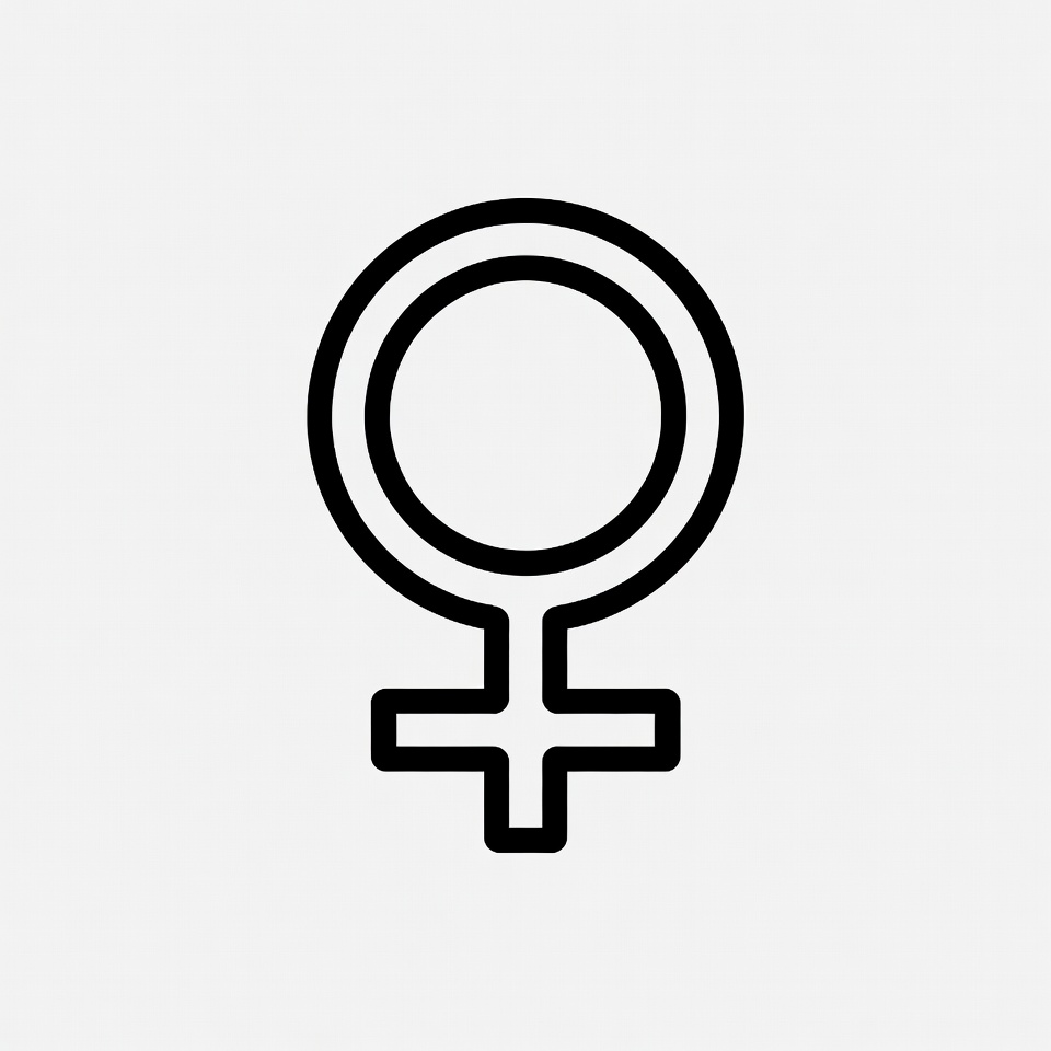 A black line drawing of the female symbol features a circle with a cross extending downward. The icon is simple and bold against a transparent background. It represents the universal symbol for female or woman.