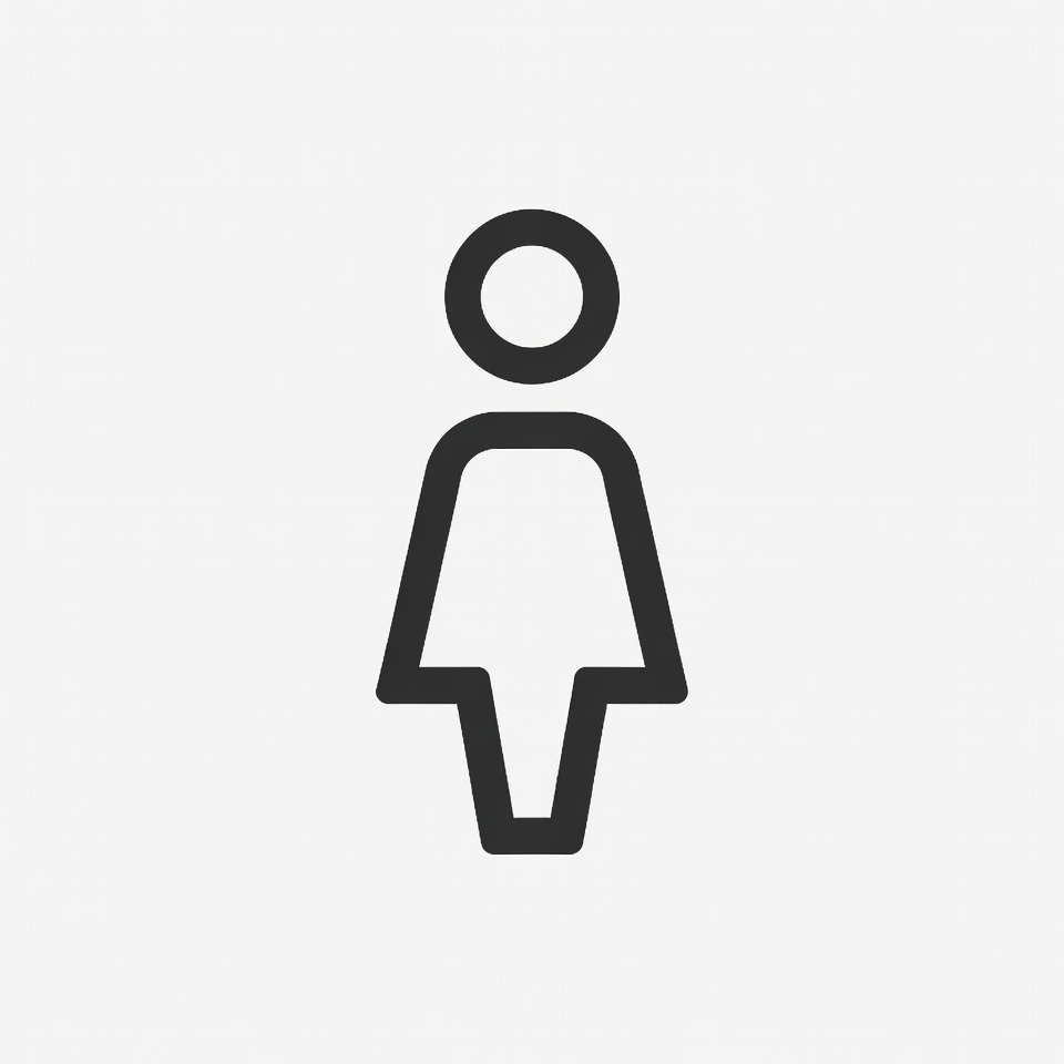 bathroom symbol, black icon, clipart, female figure, female symbol, gender icon, gender symbol, graphic symbol, illustration, isolated background, line art, minimalist design, outline drawing, sign icon, silhouette, simple icon, standing woman, vector graphic, white background, woman icon