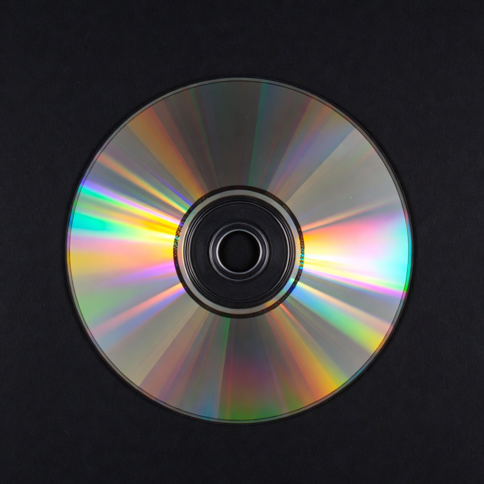 DVD-like, black background, blank CD, close-up, compact disc, data disc, disc, holographic effect, iridescent, isolated, music CD, optical disc, rainbow colors, reflective CD, shiny disc, silver disc, storage media, CD