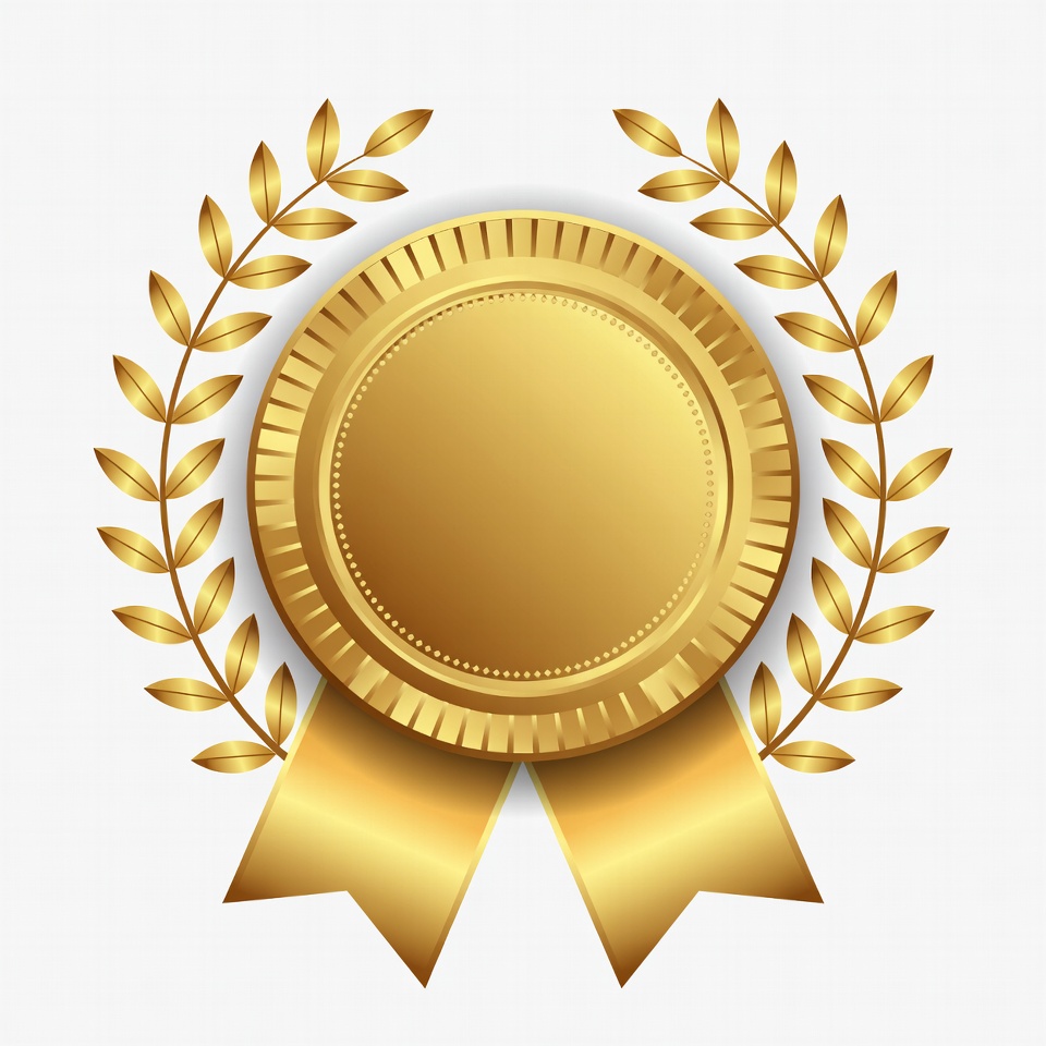 achievement, award, blank medal, champion badge, clipart, golden ribbon, illustration, isolated background, laurel wreath, prize, success icon, trophy, victory symbol, winner, gold medal