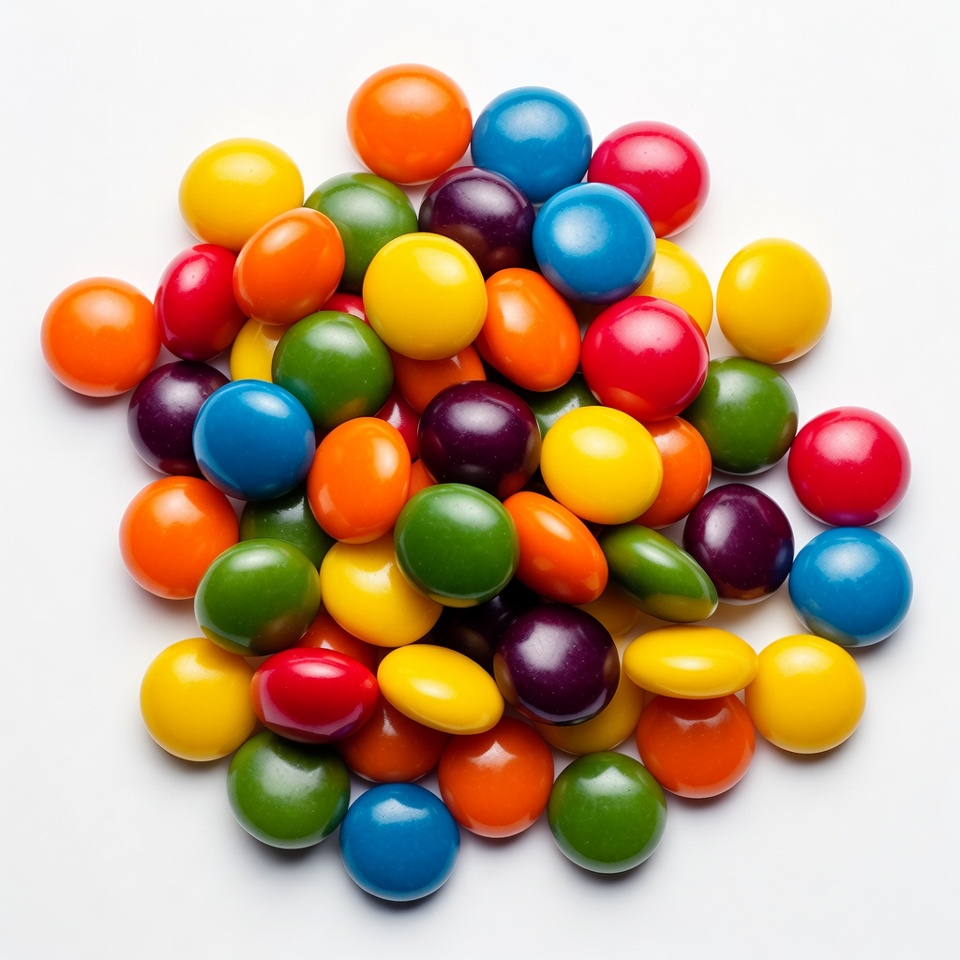Colorful Candy Pile on White