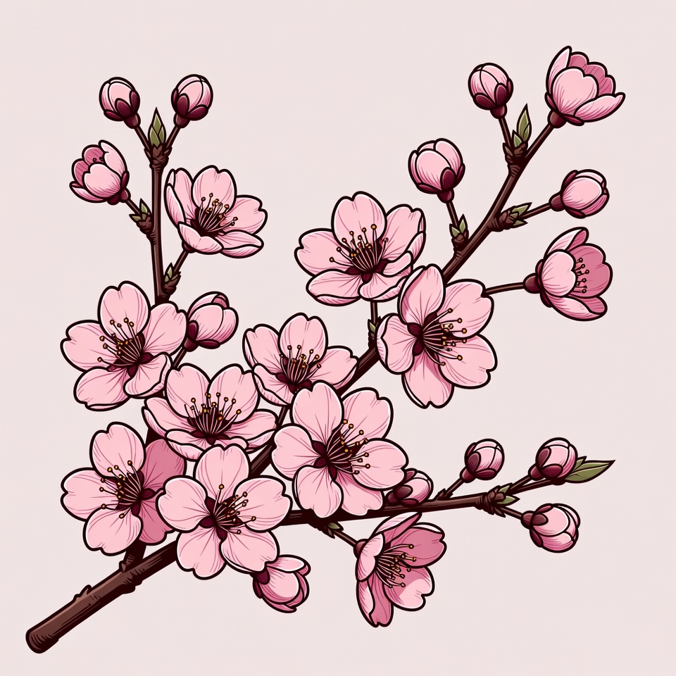 Pink Cherry Blossom Branch Illustration