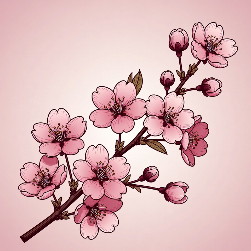 Pink Cherry Blossom Branch Illustration