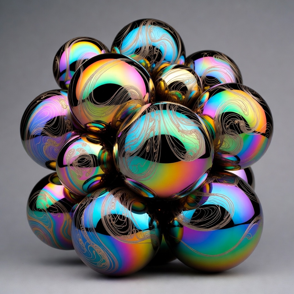 Cluster of Iridescent Metallic Spheres