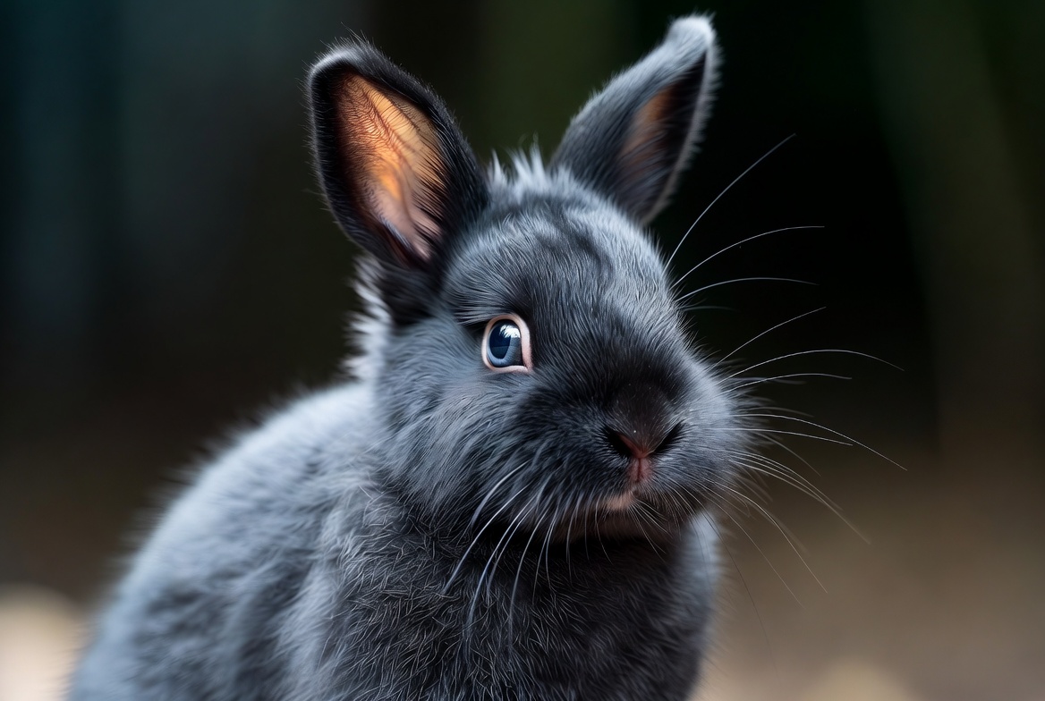 Closeup of blue-eyed black bunny