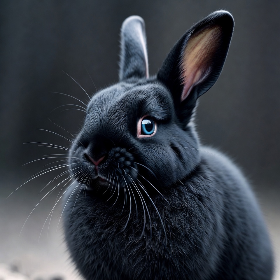 animal, blue eyes, bunny, cute bunny, fluffy fur, illustration, isolated background, long ears, pink nose, whiskers, black rabbit