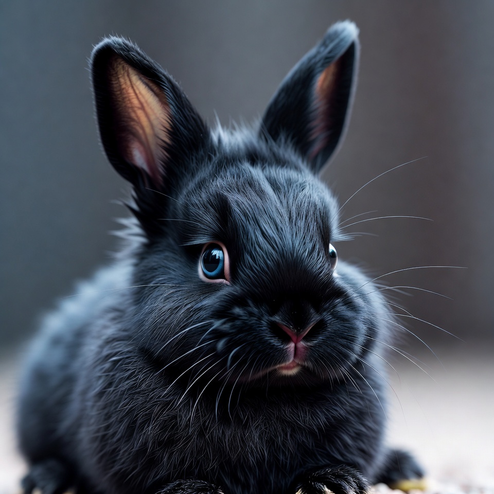adorable bunny, baby rabbit, blue eyes, brown ears, close-up, cute animal, fluffy fur, glossy fur, isolated background, long ears, paws, pet rabbit, pink nose, rabbit, black bunny