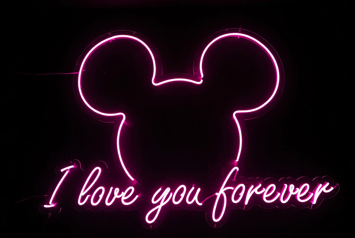 Pink Mickey Mouse I Love You Forever Neon Sign