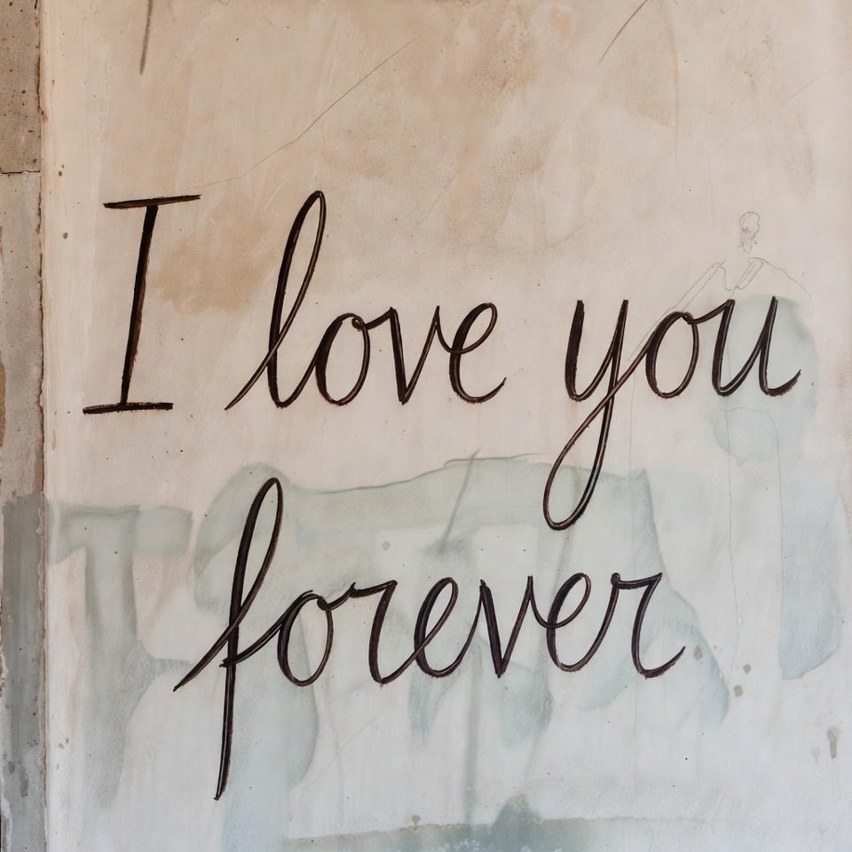 I love you, aged wall, beige wall, blue stains, cursive writing, forever, handwritten text, love message, love quote, romantic quote, street art, textured background, valentine message, wall art, watercolor stains, graffiti