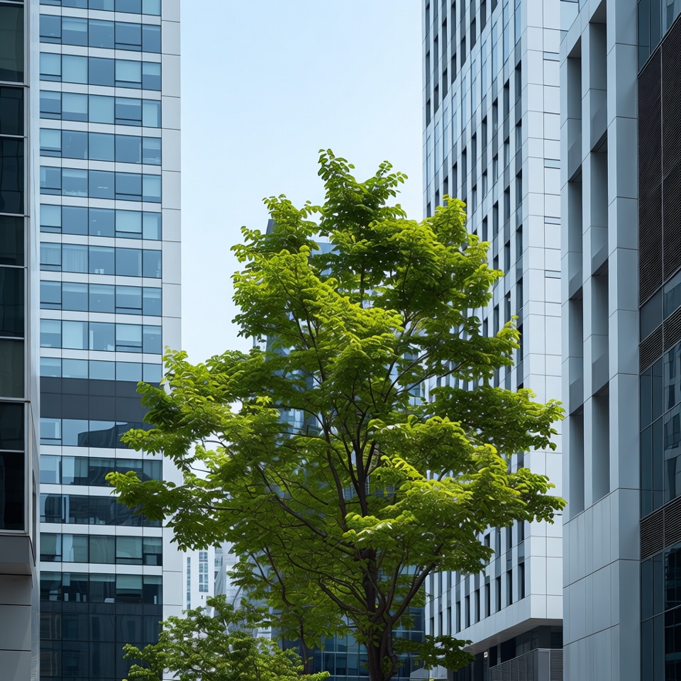 Green Tree Between Skyscrapers