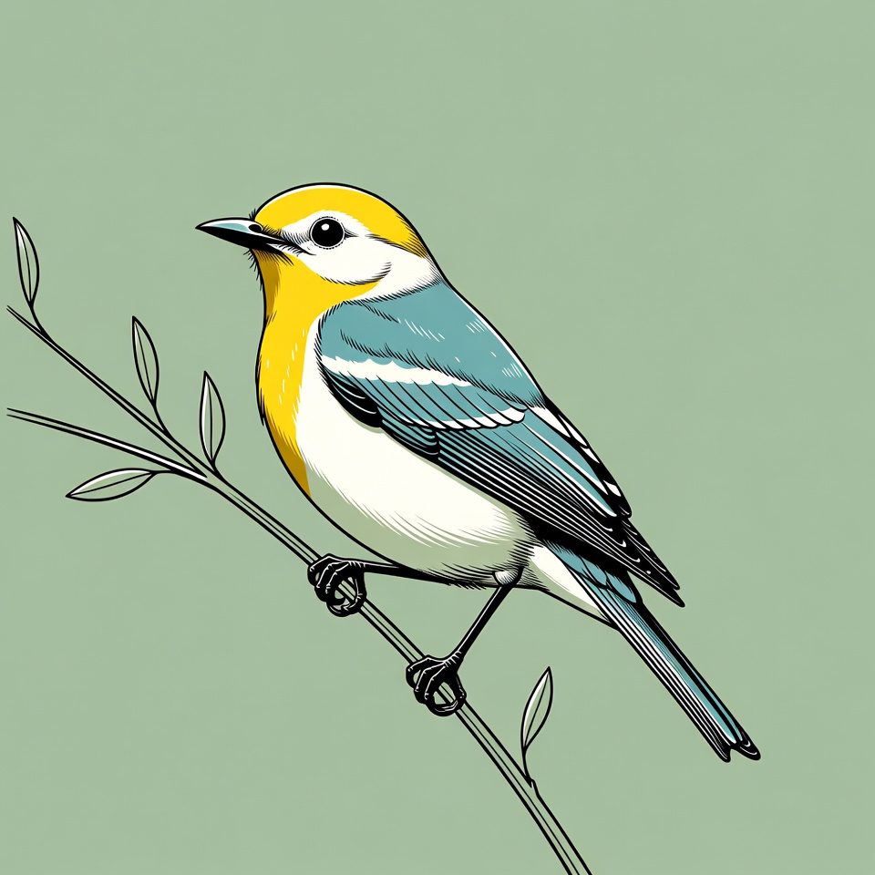bird, bird illustration, black beak, blue wings, branch, chat bird, clipart, green leaves, isolated background, perched bird, songbird, vector bird, white belly, wildlife art, yellow bird, yellow head, yellow-breasted chat