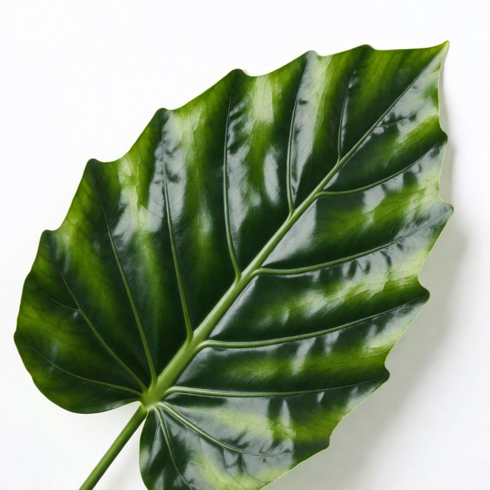 Green Alocasia Leaf on White Background