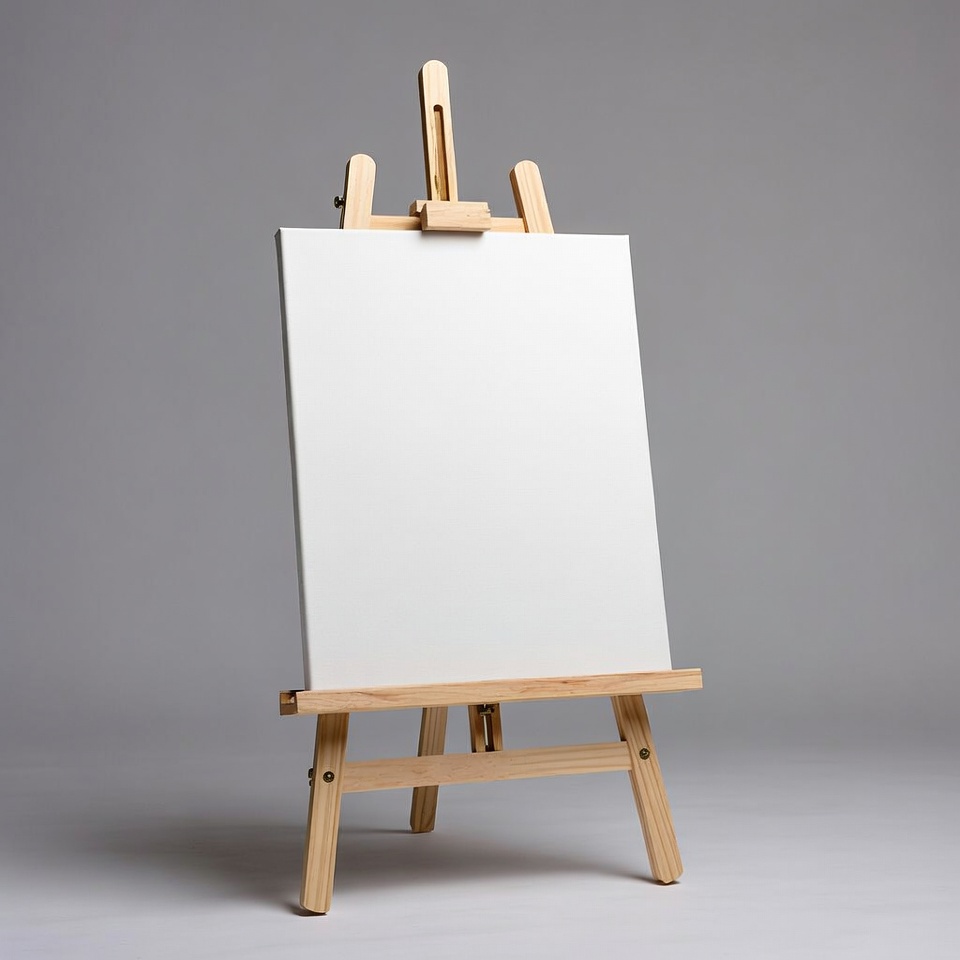 art supplies, artist easel, blank canvas, canvas, empty canvas, gray background, isolated background, painting easel, studio easel, tripod easel, white canvas, wood, wooden easel, easel