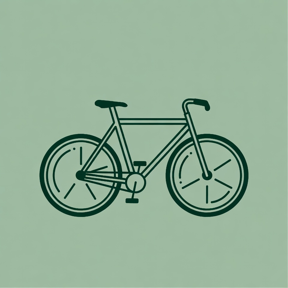 bike, clipart, cycling, drawing, graphic, green background, handlebars, icon, illustration, isolated background, line art, minimalist, outline, pedals, seat, simple bike, transport, vector, wheels, bicycle