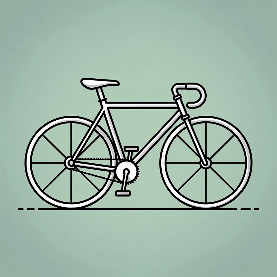 bicycle, bike, black lines, clipart, cycling, drop handlebars, green background, illustration, isolated background, line art, minimalist, outline, simple drawing, thin wheels, track bicycle, vector, white saddle, fixie bike