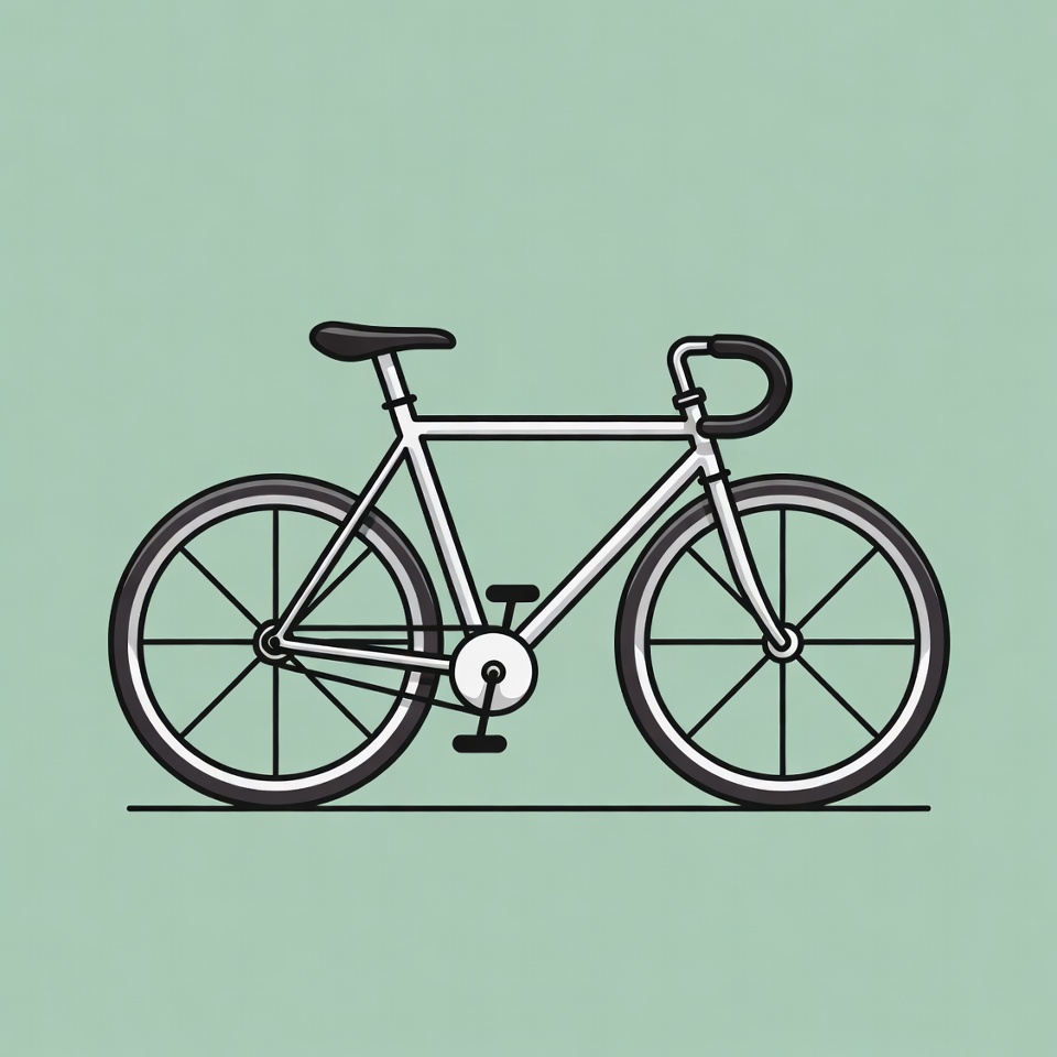 bike, chain, clipart, cycling, drop handlebars, fixed gear, frame, illustration, isolated background, line art, minimalist, mint background, pedals, track bike, vector, wheels, white bicycle, bicycle