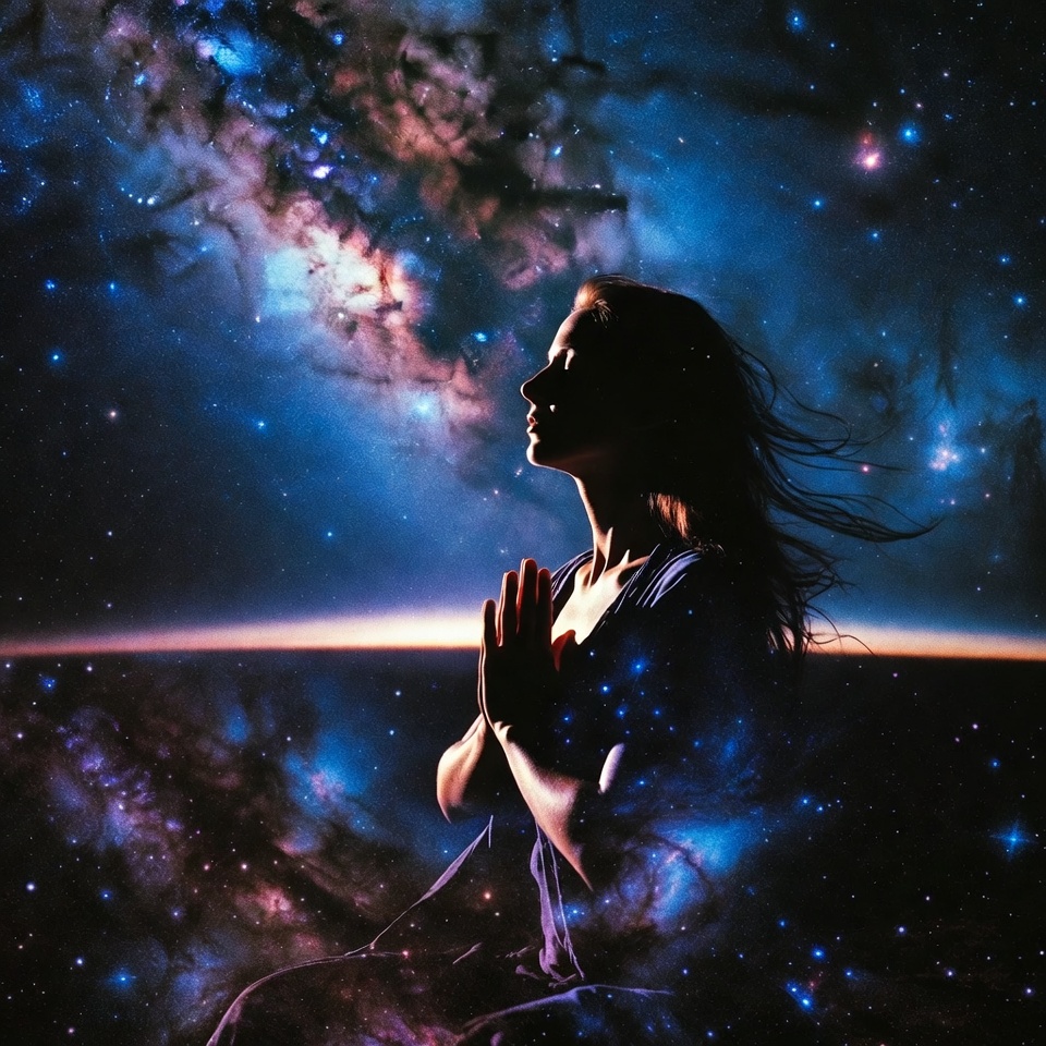 Woman Praying in Cosmic Galaxy