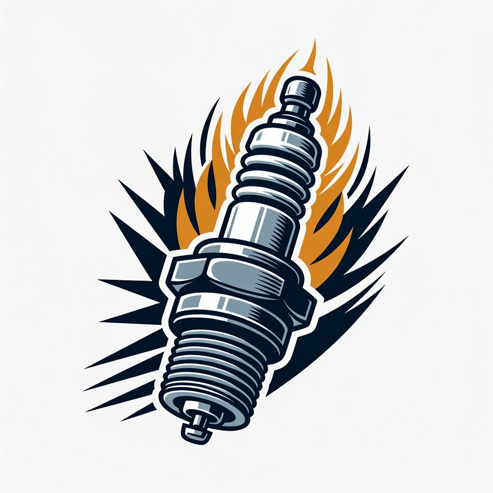 Flaming Spark Plug Illustration