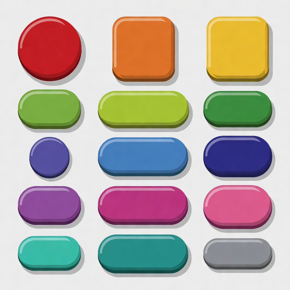 3D buttons, UI elements, blue button, button icons, clipart, colorful buttons, glossy buttons, graphic design, gray button, green button, illustration, isolated background, orange button, pink button, purple button, red button, round buttons, square buttons, teal button, yellow button, buttons