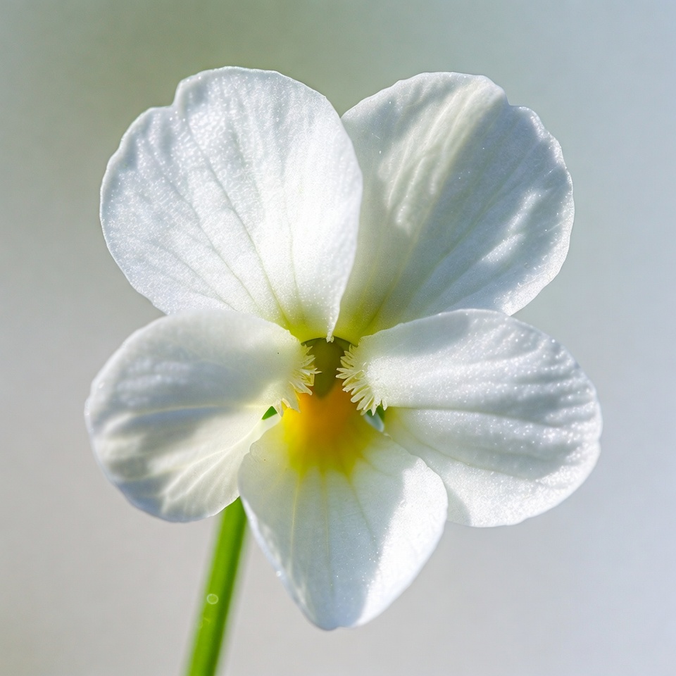 bloom, blossom, closeup, delicate, floral, flower macro, green stem, isolated background, macro, nature, petals, plant, spring flower, viola, violet, white petals, wildflower, yellow center, white flower
