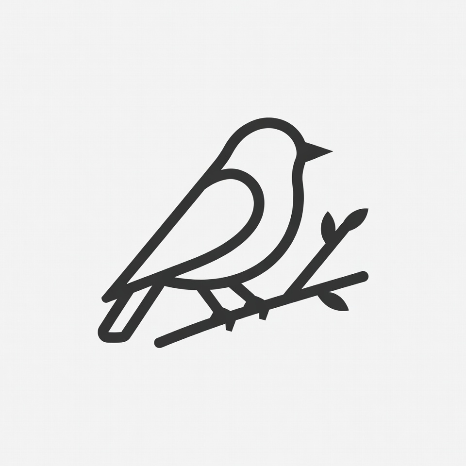 branch, clipart, illustration, isolated background, leaves, line art, nature symbol, outline drawing, perched bird, simple bird, songbird, vector bird, wildlife icon, bird