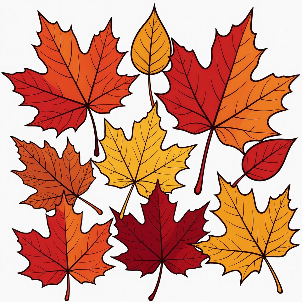 clipart, colorful leaves, fall leaves, foliage, illustration, isolated background, leaf collection, maple leaves, orange foliage, orange leaves, red foliage, red leaves, seasonal, vector art, yellow foliage, yellow leaves, autumn leaves