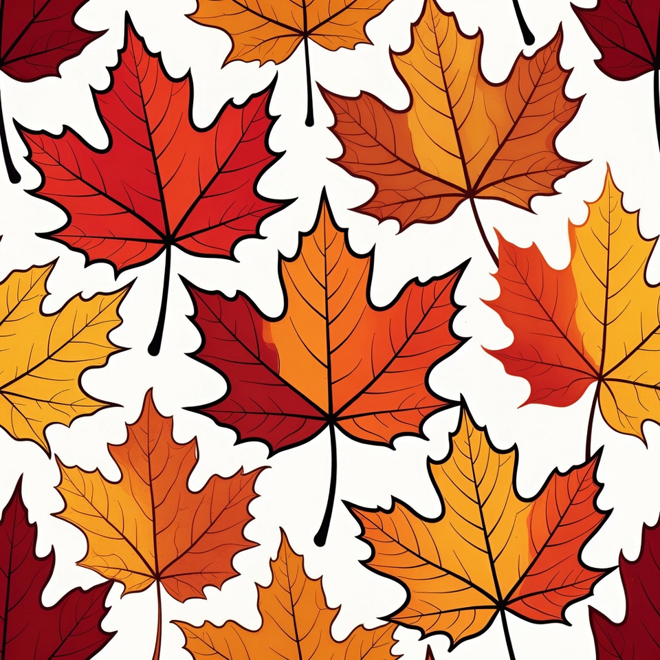 clipart, fall leaves, foliage, graphic, illustration, isolated background, leaf pattern, maple leaves, nature, orange leaves, red leaves, repeating pattern, seamless pattern, seasonal, vector, white background, yellow leaves, autumn leaves