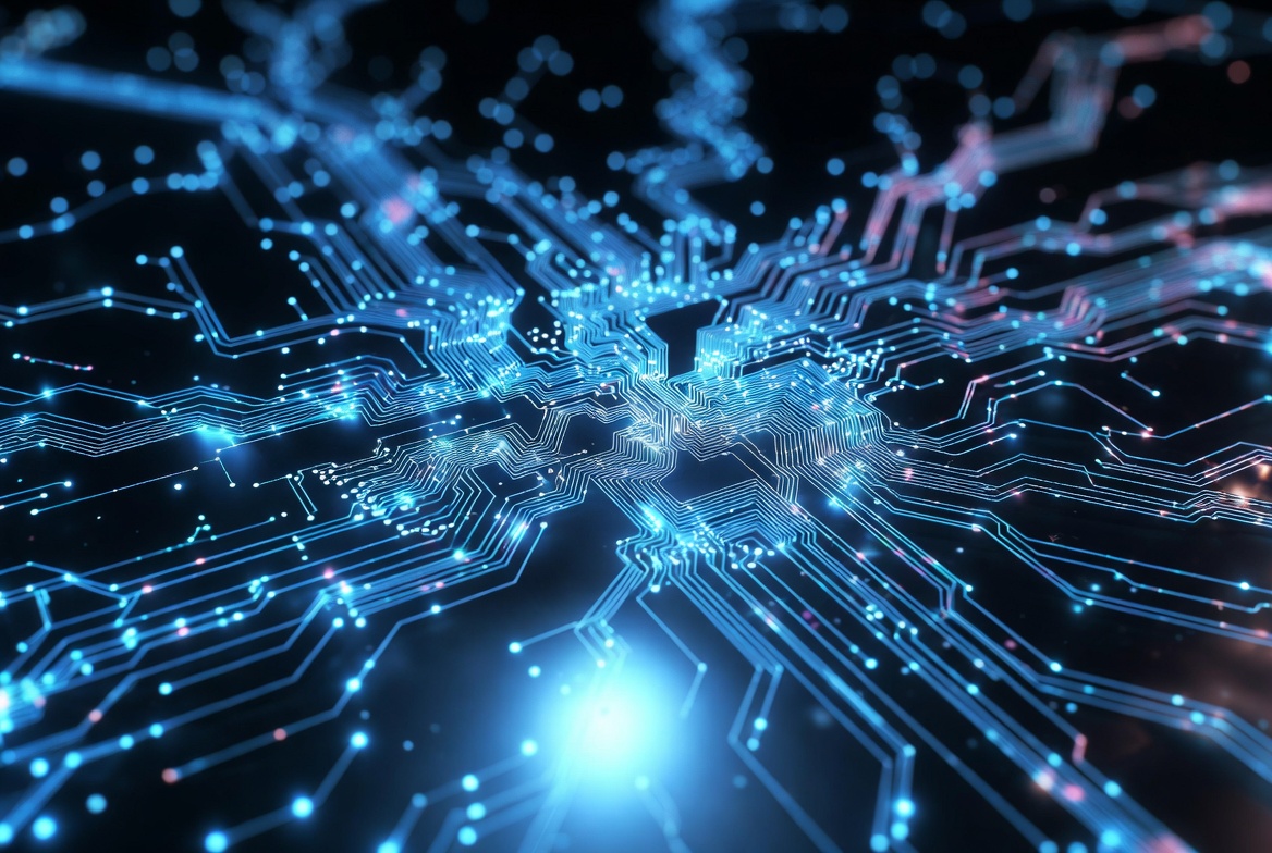 Glowing Blue Circuit Board Pattern