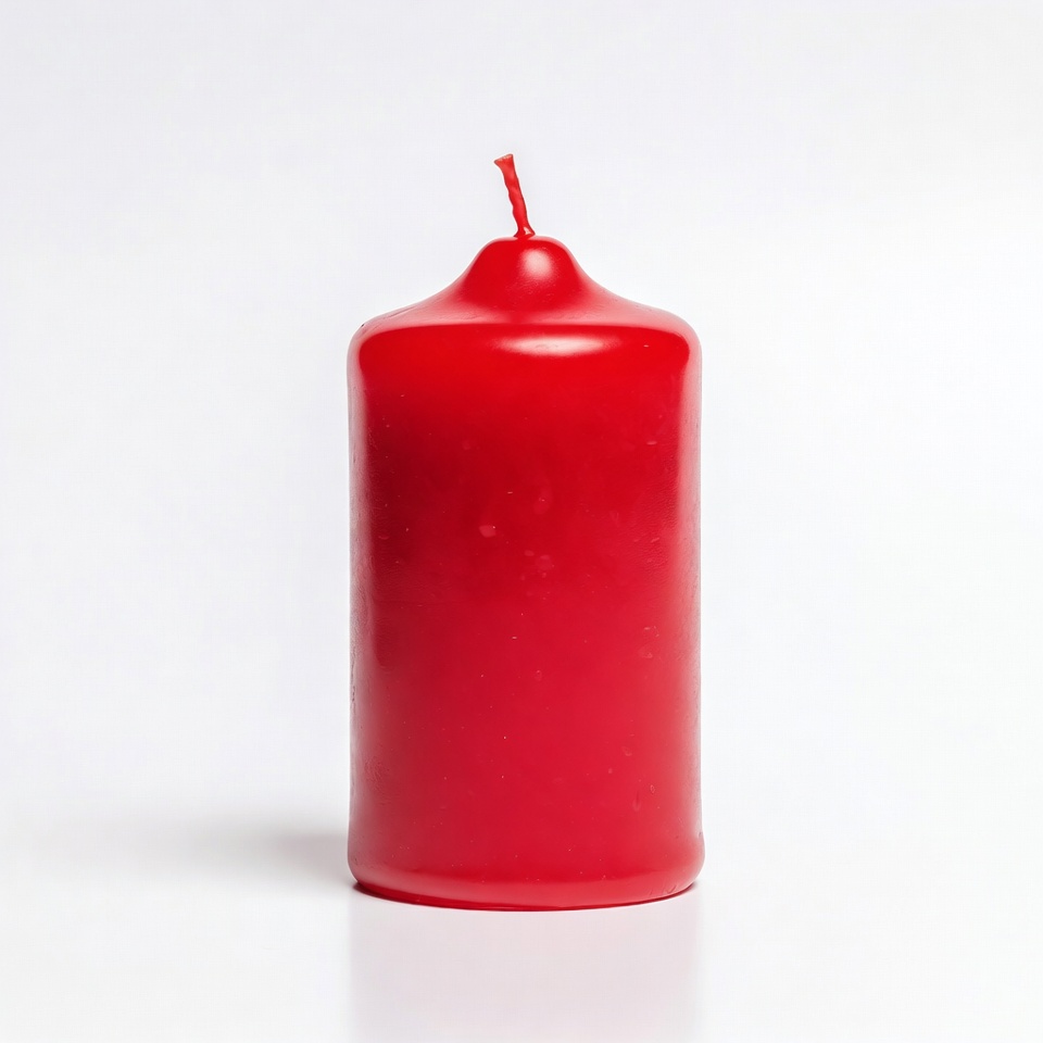 candle, cylindrical candle, isolated background, pillar candle, red wax, single candle, votive candle, white background, wick, red candle