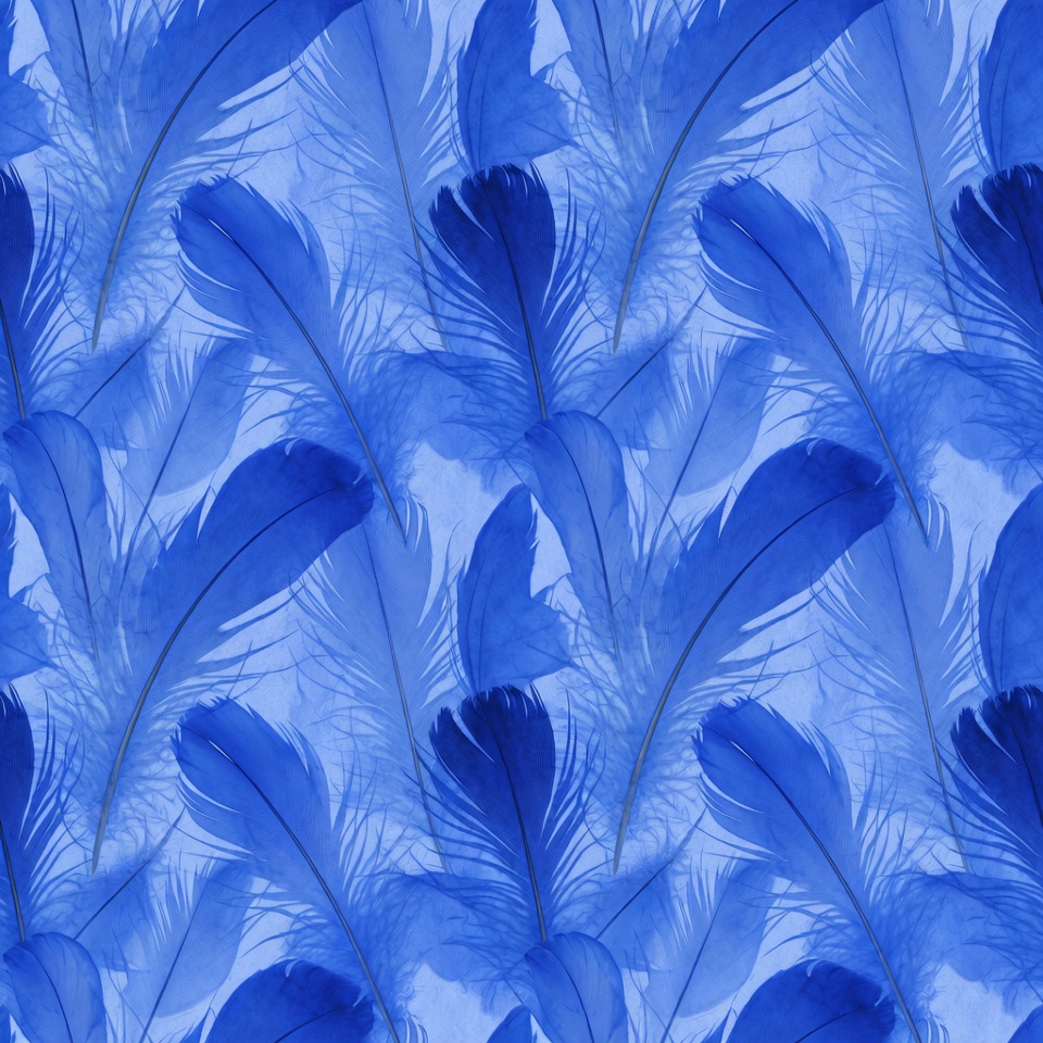 abstract feathers, blue background, blue pattern, clipart, decorative pattern, feather design, feather pattern, feathers, illustration, layered feathers, peacock feathers, repeating pattern, seamless pattern, soft feathers, texture, watercolor feathers, blue feathers