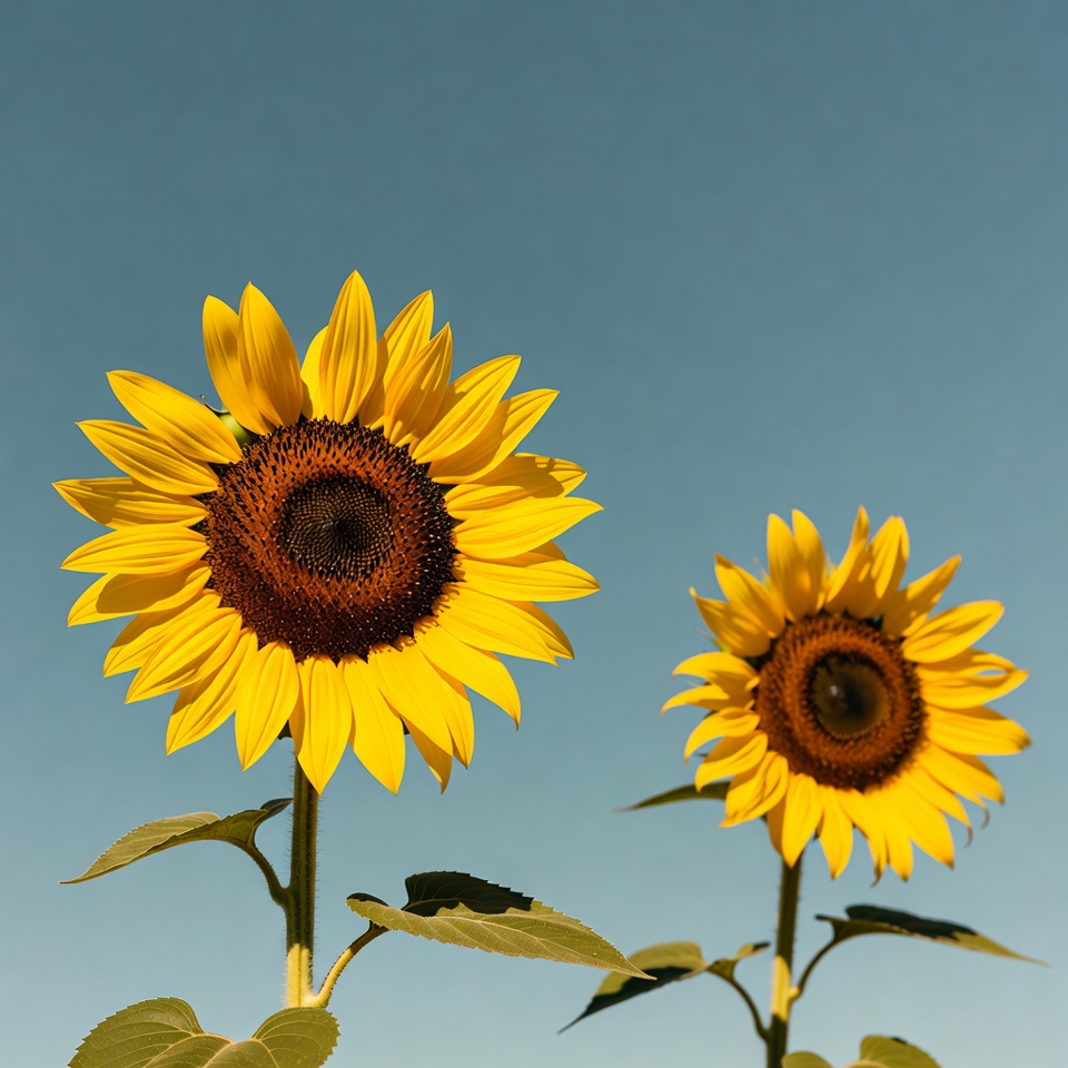 Two Sunflowers Against Blue Sky