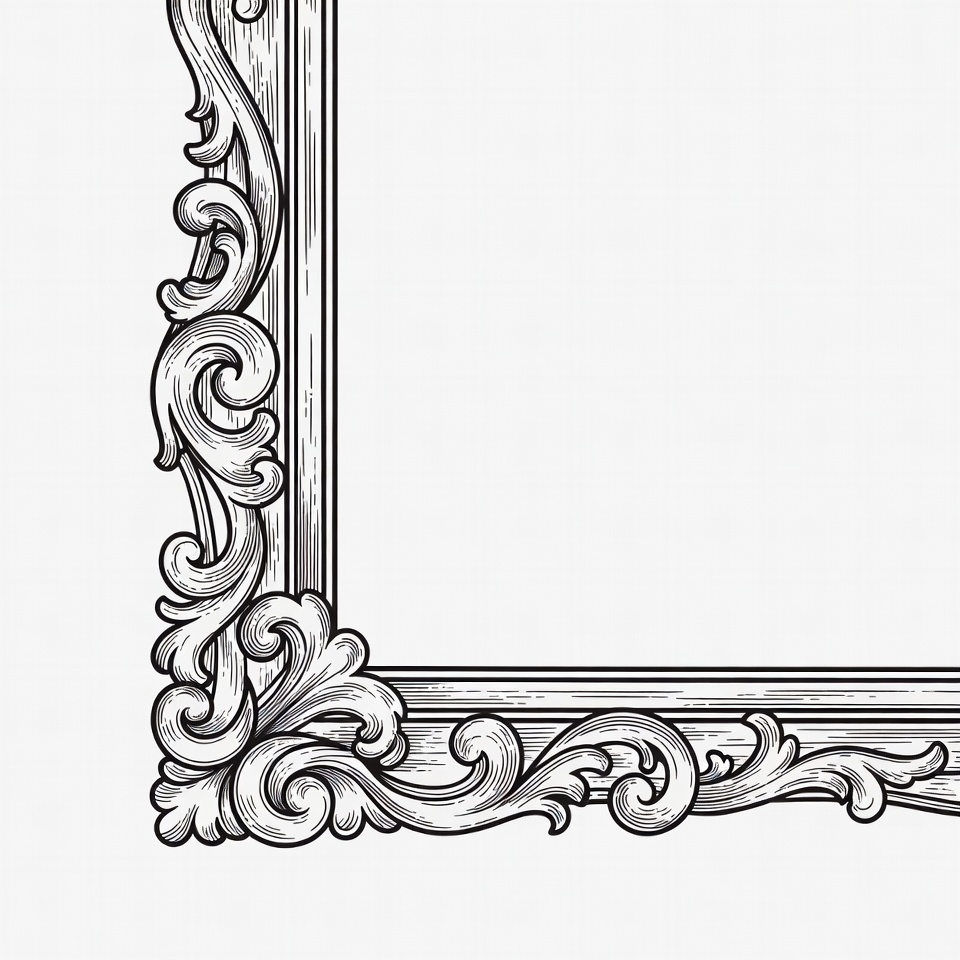 artistic border, baroque frame, classic frame, clipart, decorative frame, elegant frame, empty frame, engraving style, floral motifs, frame design, gold frame, illustration, isolated background, line art, ornate frame, rococo design, scrollwork, vector art, vintage frame, picture frame