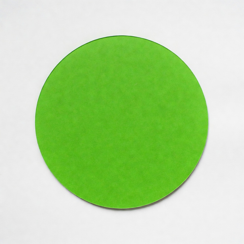 A solid bright green circle isolated on a white background. The disc has a perfectly round shape with smooth edges. It appears uniform in color and texture.