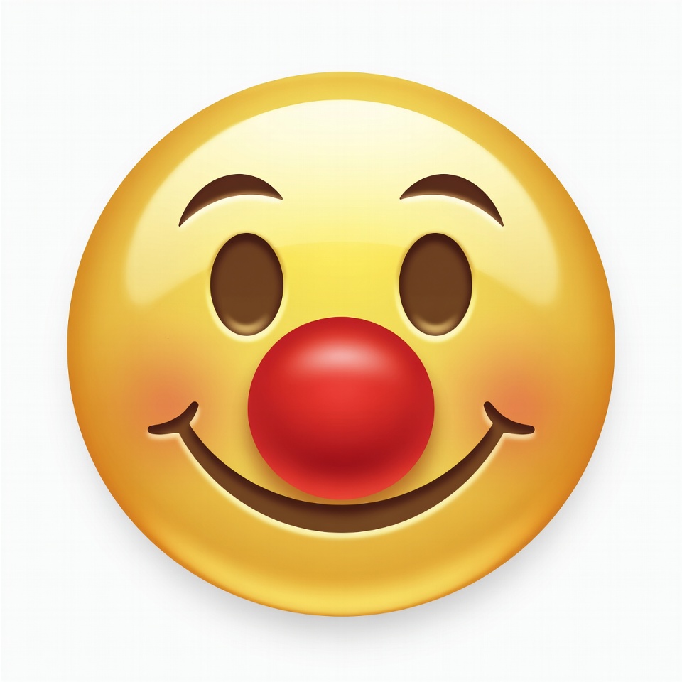 3D emoji, cartoon, circus clown, clipart, clown, emoji, fun emoji, glossy, happy clown, illustration, isolated background, red nose, smiling face, yellow face, clown emoji