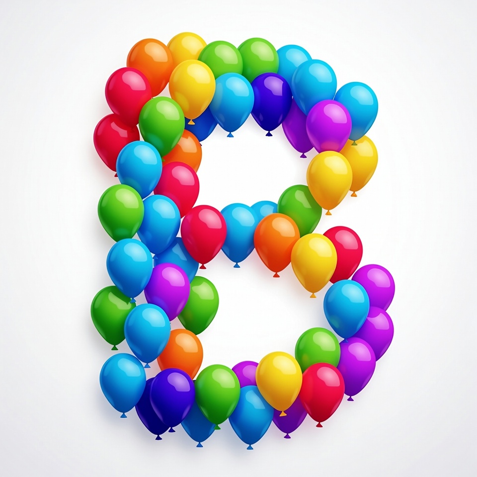 3D balloons, alphabet letter, balloon art, blue balloons, colorful balloons, green balloons, helium balloons, isolated background, letter B, multicolor, orange balloons, party balloons, purple balloons, rainbow balloons, red balloons, shiny balloons, vibrant colors, white background, yellow balloons, balloons