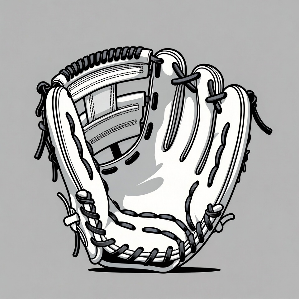 baseball mitt, catcher's mitt, clipart, gray background, illustration, isolated background, laces, leather glove, line art, sports equipment, stitching, vector art, webbing, white glove, baseball glove
