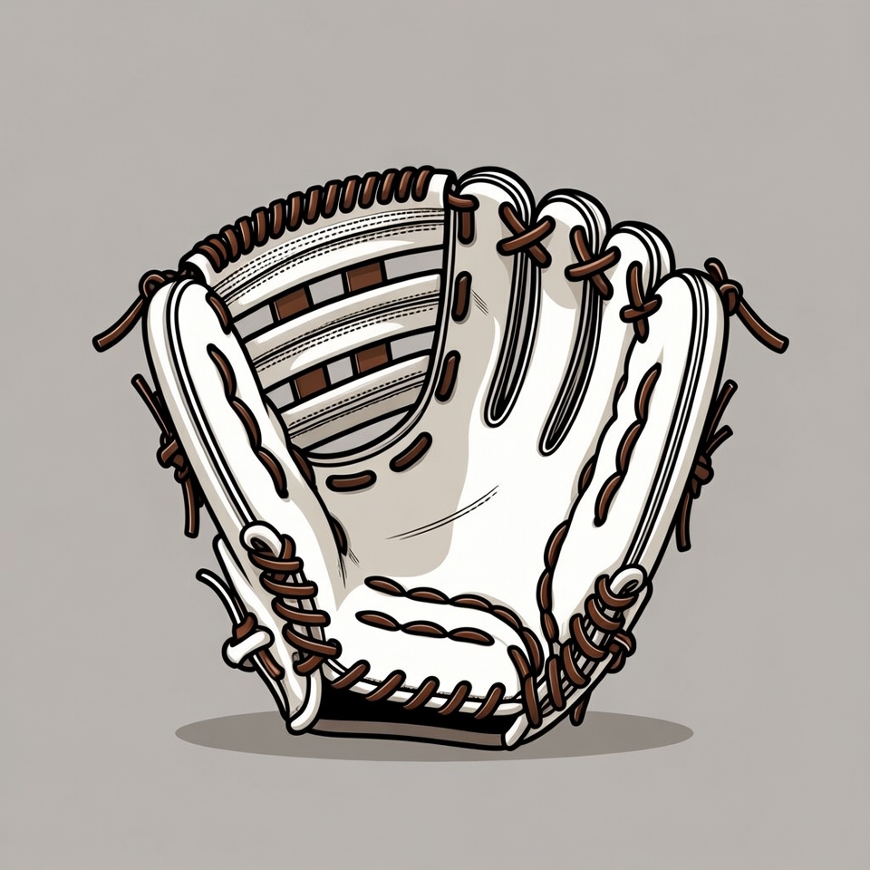 baseball gear, baseball mitt, catcher's mitt, clipart, illustration, isolated background, laces, leather glove, sports equipment, stitching, vector art, white glove, baseball glove