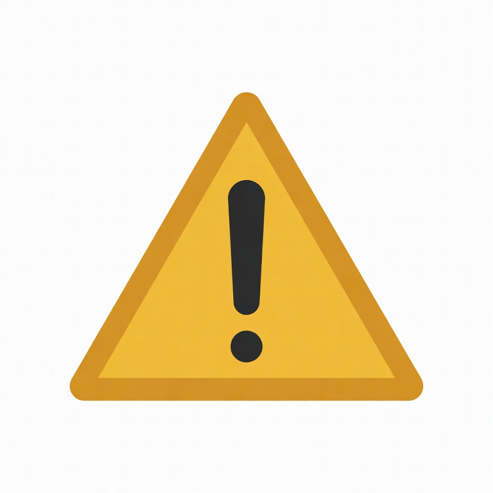A yellow triangular warning sign features a large black exclamation mark and a small dot below it. The sign has a bold black outline and is isolated on a white background. It is a simple flat icon design.