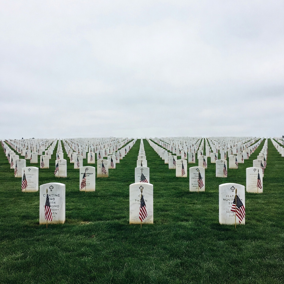 American flags, Arlington cemetery, Memorial Day, burial ground, cloudy sky, field, flags, gravestones, green grass, headstones, memorial, military cemetery, patriotism, rows, solemn, tombstones, veterans, white headstones, cemetery