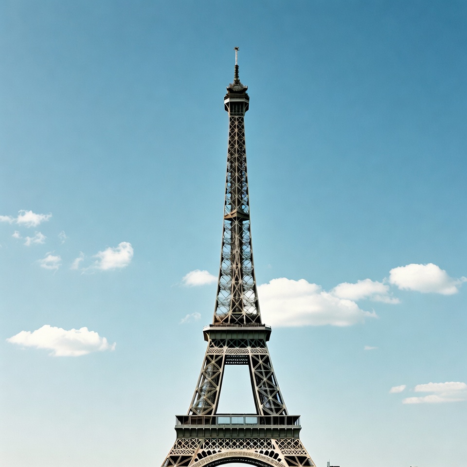 France, Paris landmark, architecture, blue sky, clear weather, daytime, iconic monument, iron tower, landmark, lattice design, tall structure, tourist attraction, travel, white clouds, Eiffel Tower