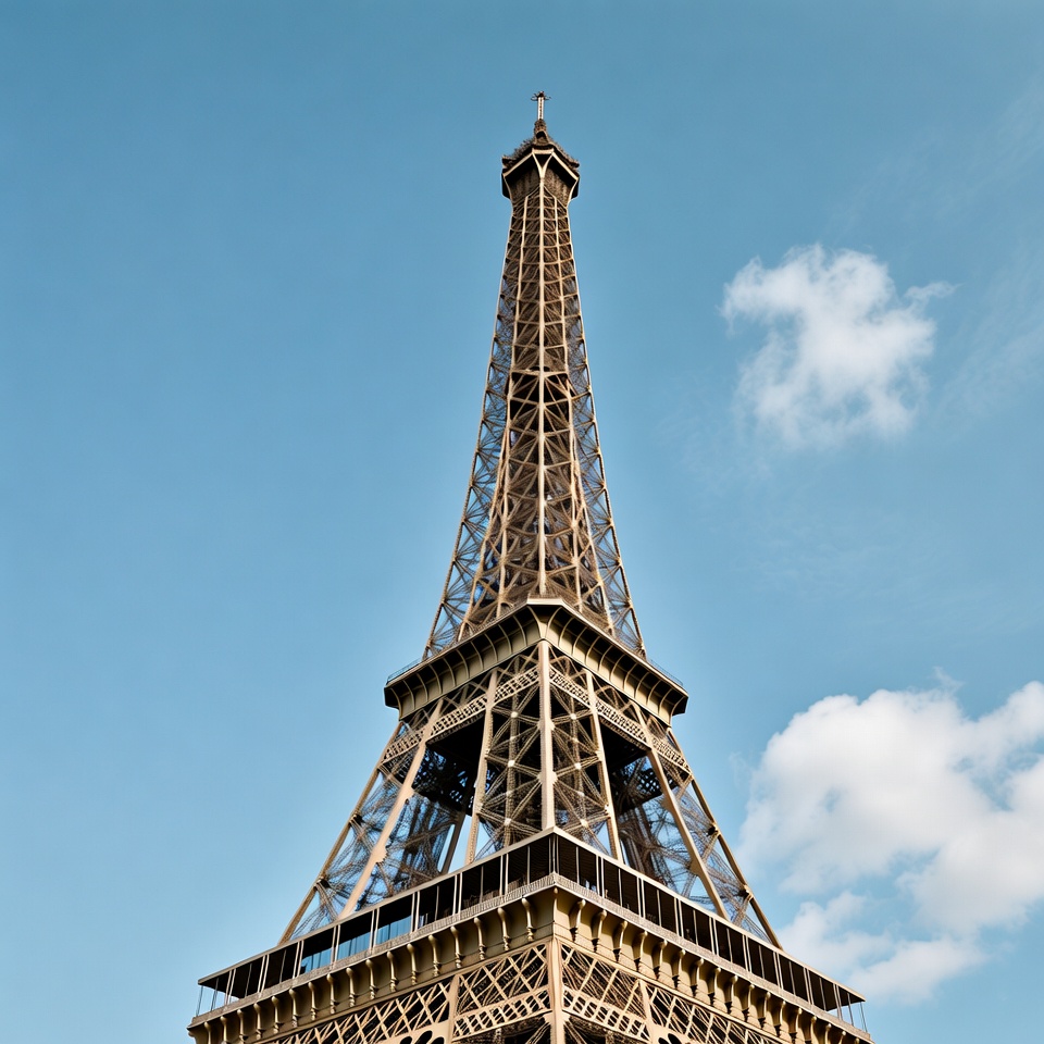 Europe, French monument, Paris landmark, architecture, blue sky, iron tower, landmark, lattice design, sky view, tall structure, tourist attraction, travel icon, upward angle, white clouds, Eiffel Tower