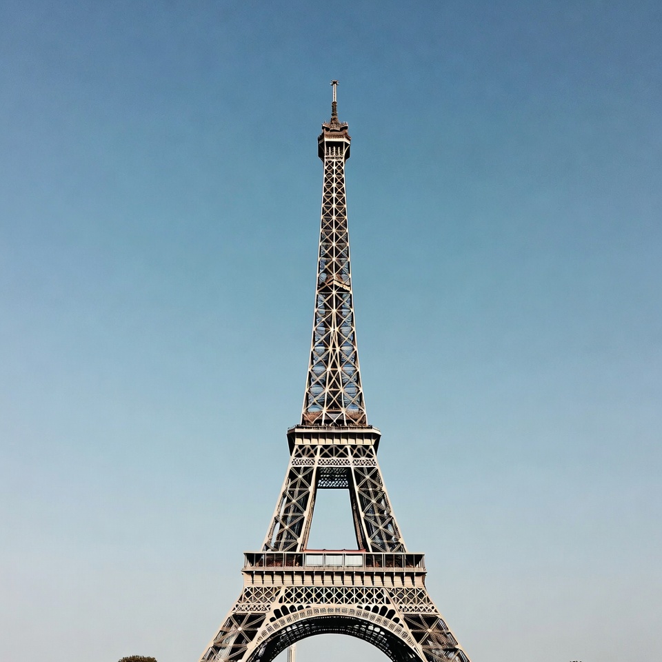 France, France icon, Paris, Paris landmark, architecture, blue sky, cloudy sky, iron tower, landmark, metal lattice, sky, tall structure, tourist attraction, travel landmark, Eiffel Tower